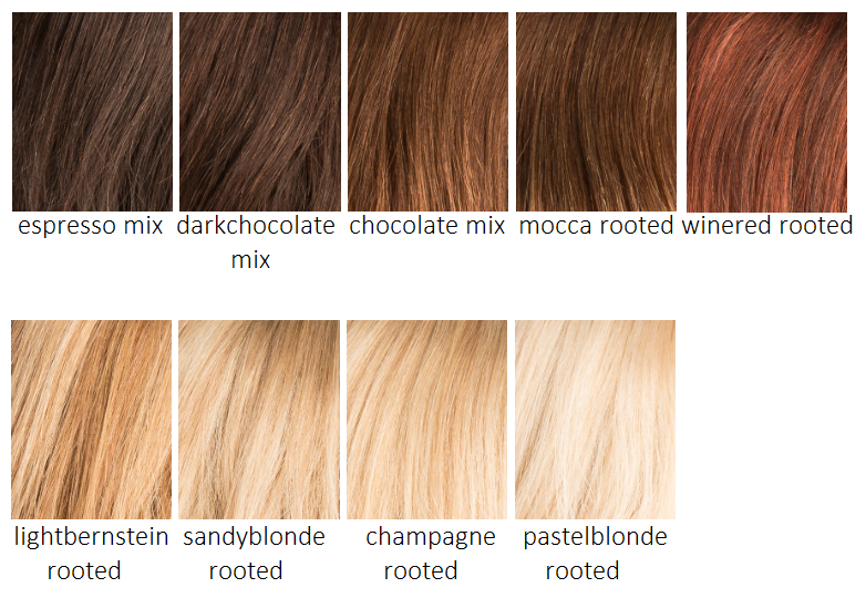 Lace front, monofilament: a homlokvonalnál, a haj kezdetnél és a fejtető egészén fejbőr hatású tüll anyaggal, így a választék tetszőlegesen fésülhető