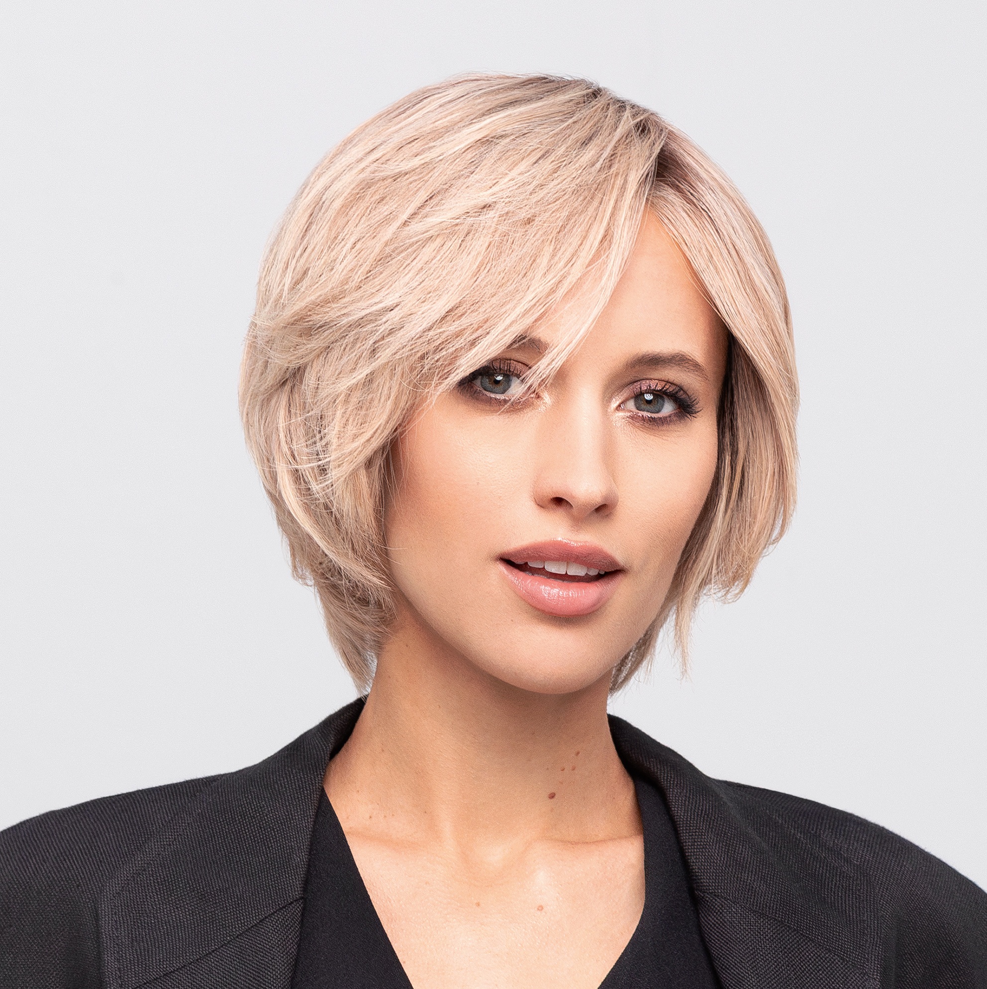 Lace front, monofilament: a homlokvonalnál, a haj kezdetnél és a fejtető egészén fejbőr hatású tüll anyaggal, így a választék tetszőlegesen fésülhető