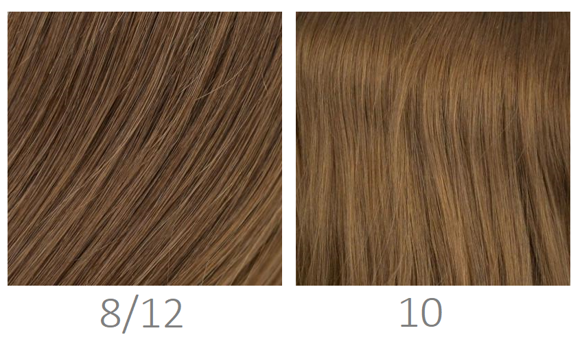 Lace front, monofilament: a homlokvonalnál, a haj kezdetnél és a fejtető egészén fejbőr hatású tüll anyaggal, így a választék tetszőlegesen fésülhető