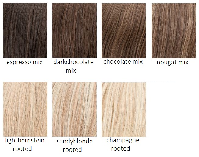 Lace front, monofilament: a homlokvonalnál, a haj kezdetnél és a fejtető egészén fejbőr hatású tüll anyaggal, így a választék tetszőlegesen fésülhető