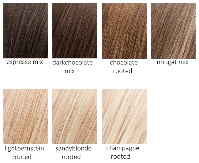 Lace front, monofilament: a homlokvonalnál, a haj kezdetnél és a fejtető egészén fejbőr hatású tüll anyaggal, így a választék tetszőlegesen fésülhető