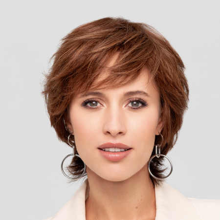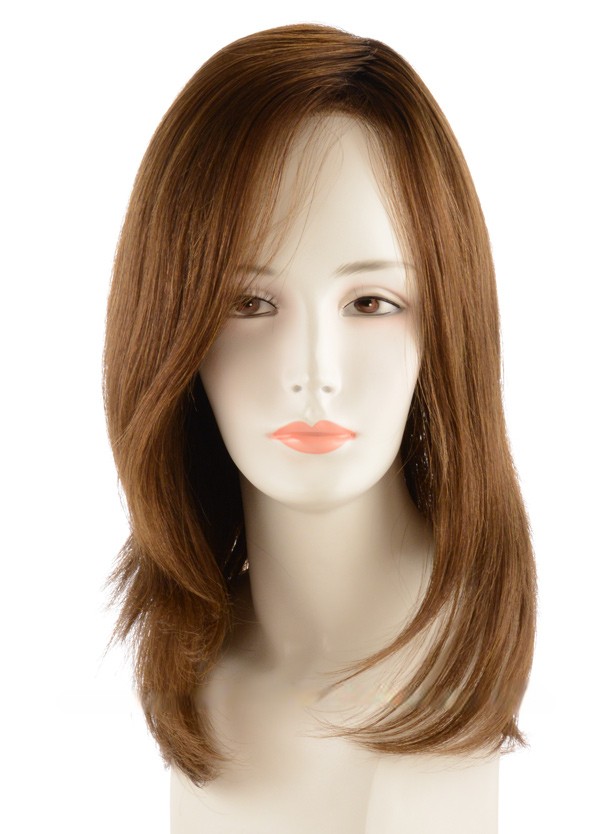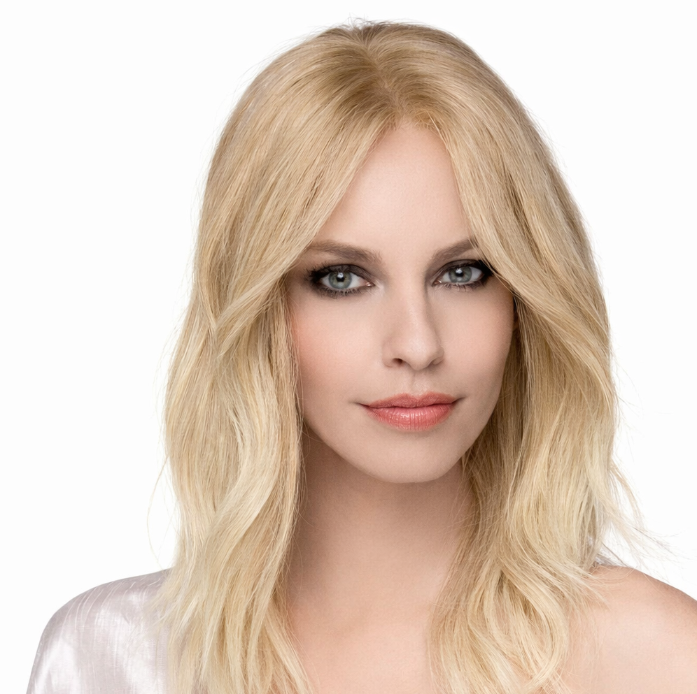 Lace front, monofilament: a homlokvonalnál, a haj kezdetnél és a fejtető egészén fejbőr hatású tüll anyaggal, így a választék tetszőlegesen fésülhető